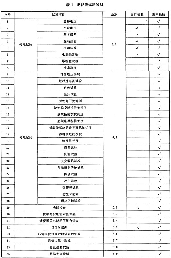 每個電能表按照本標(biāo)準(zhǔn)的試驗方法進行檢驗,檢驗合格后應(yīng)施加出廠封印,并出具質(zhì)量合格證明,試驗項目見表1。